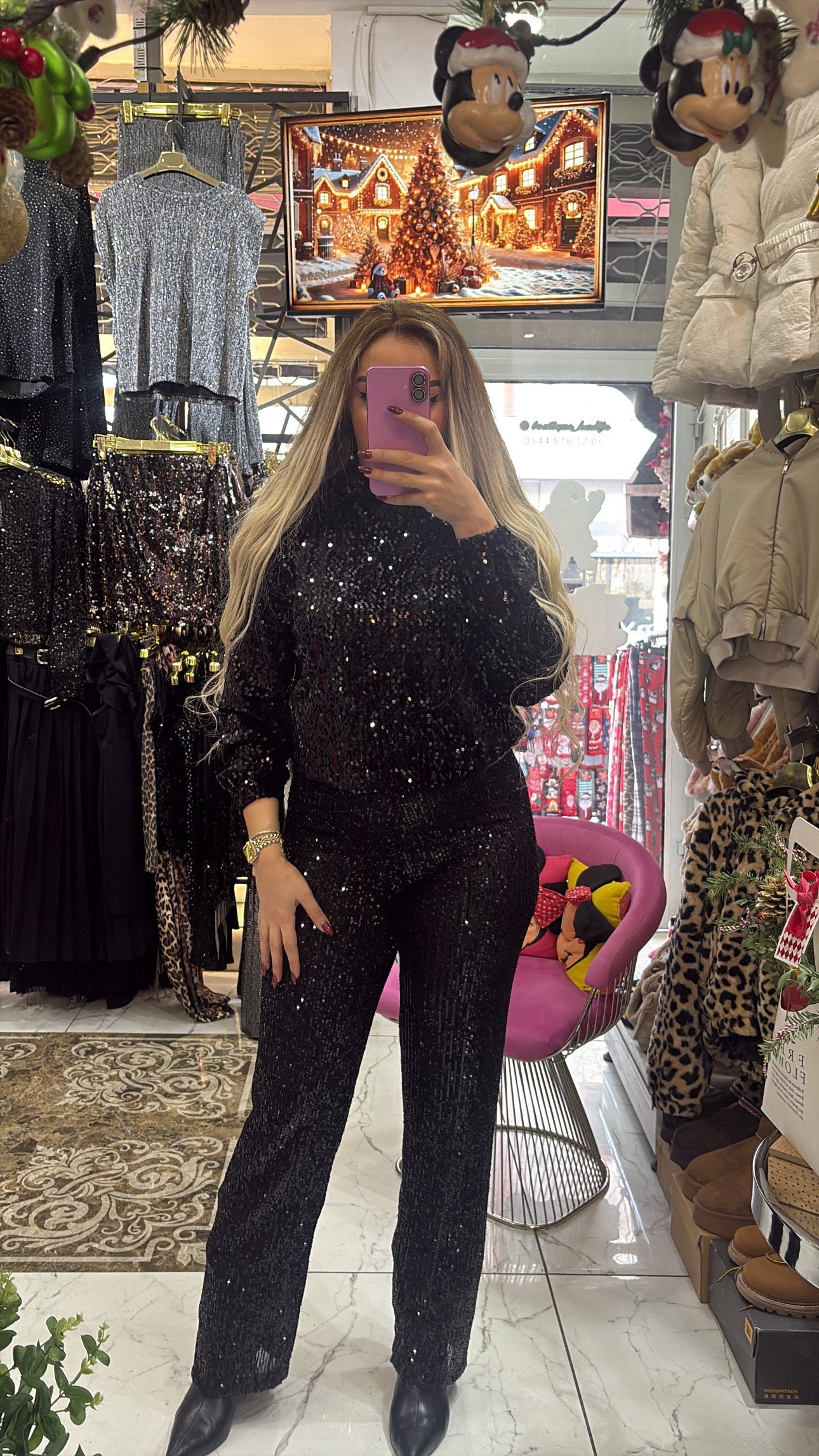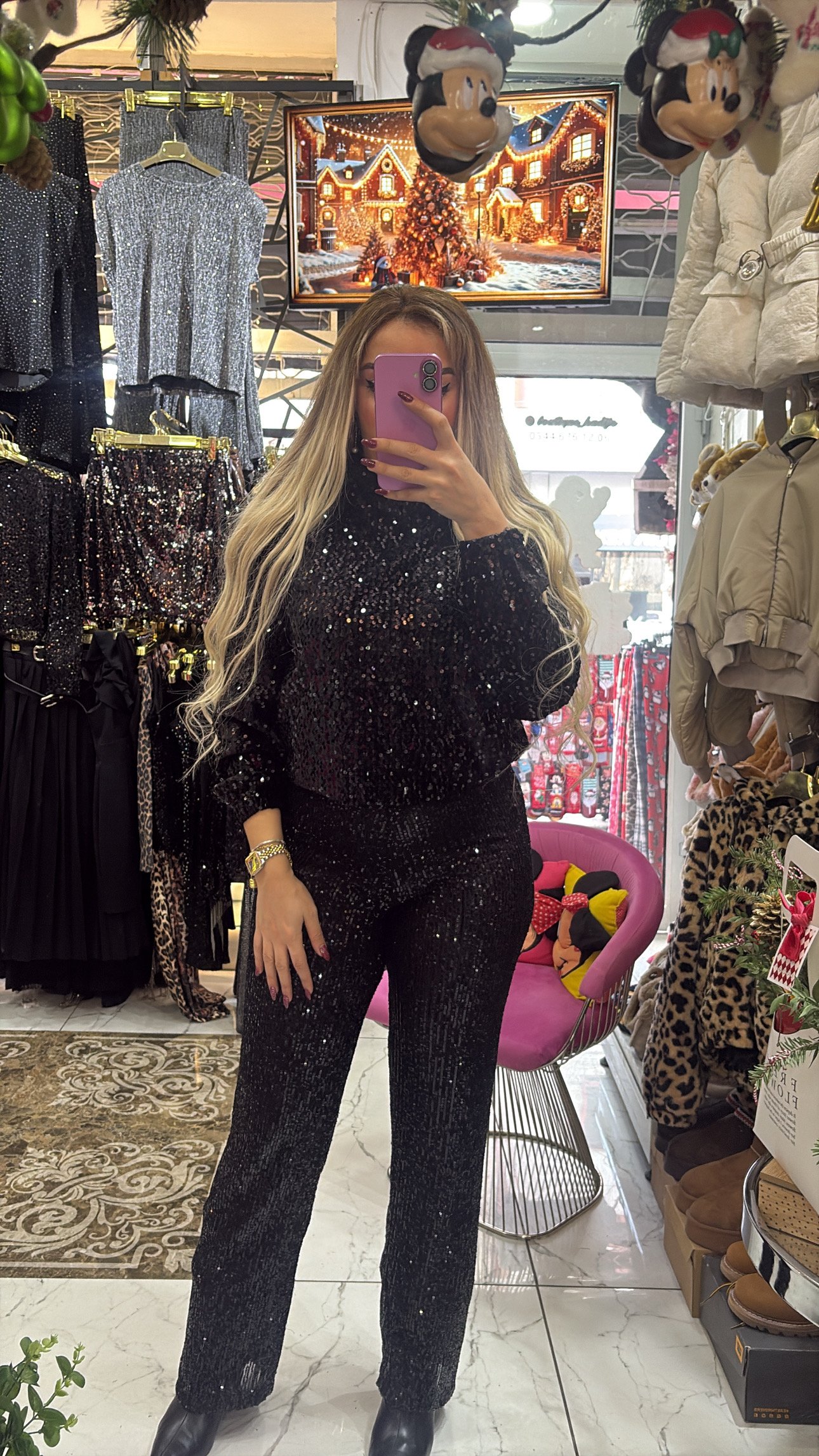 siyah kapsonlu payetli sweatshirt